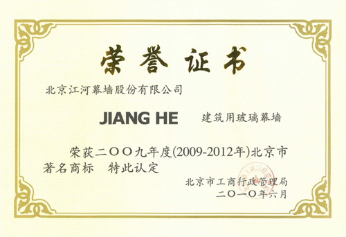 江河幕墻被認(rèn)定為北京市著名商標(biāo),是全體江河人多年來(lái)精誠(chéng)團(tuán)結(jié)、兢兢業(yè)業(yè)共同努力的成果,是市場(chǎng)、合作伙伴、消費(fèi)者以及行業(yè)協(xié)會(huì)、政府部門對(duì)江河幕墻品牌的充分肯定,也是江河幕墻“為全球客戶提供專業(yè)化高品質(zhì)的幕墻產(chǎn)品和服務(wù)”宗旨的最好詮釋。