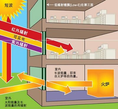 Sun-G 100低輻射鍍膜玻璃通過減少長波能量的進入以提供更好的隔熱效果(該性能通過K值和U值得以體現(xiàn))。K值和U值越低則玻璃的隔熱性能越佳。Sun-G100低輻射鍍膜玻璃所組成的中空玻璃(夾層中填充氬氣)對比于普通中空玻璃,K值可降低41%。