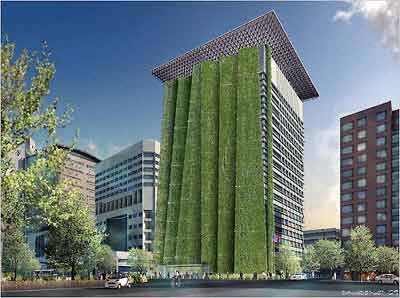 屋頂積攢的雨水,甚至建筑內部管網回收的“中水”都可用于灌溉,建筑師們如是說。但他們也承認仍在思考更好的點子來翻新伊迪思格林─溫德爾懷亞特聯邦大樓,它始建于1975年,是一棟18層的混凝土、玻璃結構的庸常建筑。