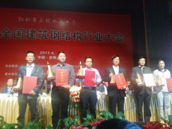 中國建筑工程鋼結(jié)構(gòu)金獎(jiǎng),簡稱“鋼結(jié)構(gòu)金獎(jiǎng)”,是中國建筑鋼結(jié)構(gòu)行業(yè)工程質(zhì)量的最高榮譽(yù)獎(jiǎng)。公司環(huán)境院的深圳大運(yùn)中心鋼結(jié)構(gòu)工程榮獲該項(xiàng)殊榮。4月13日在昆明舉辦了2011年全國建筑鋼結(jié)構(gòu)行業(yè)大會(huì)及頒獎(jiǎng)典禮。公司總經(jīng)理劉瓊祥、技術(shù)質(zhì)量管理部副部長李暉代表公司出席了本次會(huì)議。