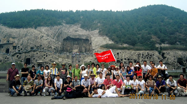 在清泉綠樹中,在伊水石窟前,大家三五成群留下難忘瞬間,會心的笑容映在他們的臉上。