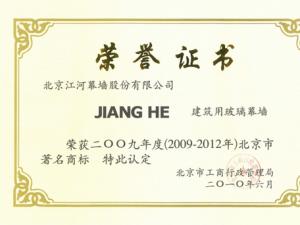 6月3日,根據《北京市著名商標認定和保護辦法》的規定,北京市工商局會同市農委、市質量技術監督局、市旅游局等部門共同對2009年參加復審和首次申請認定的商標進行審核,經廣泛征求有關部門和行業協會意見,江河幕墻“JIANGHE”商標被認定為2009..